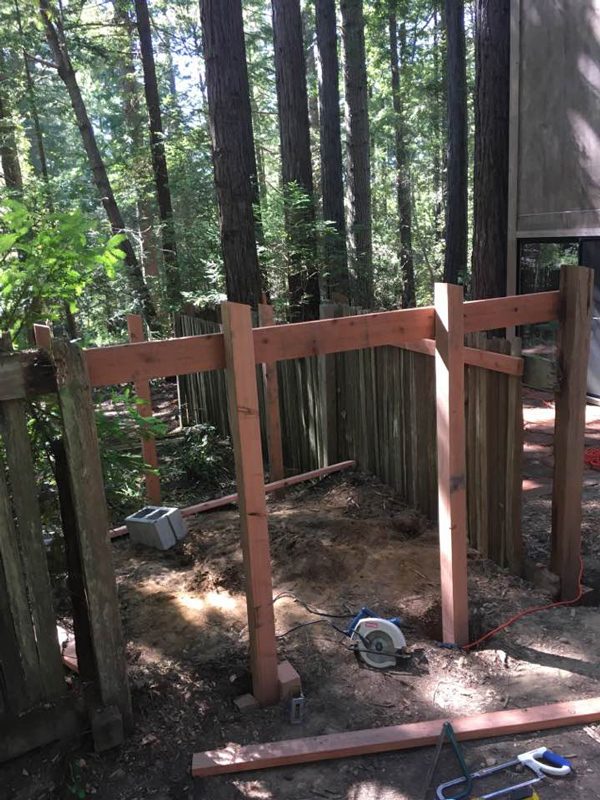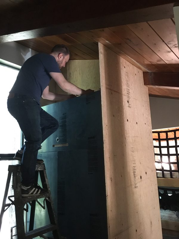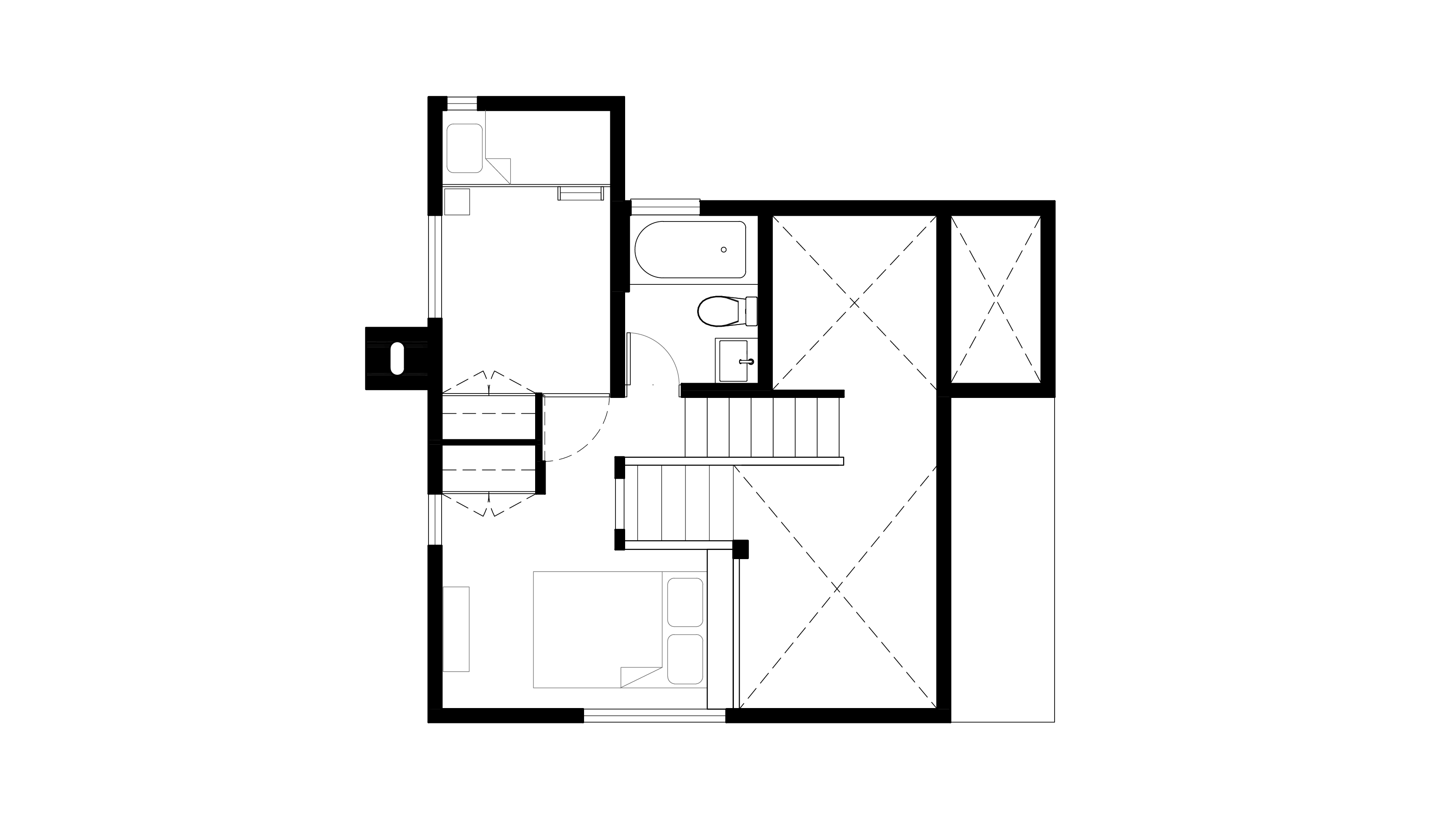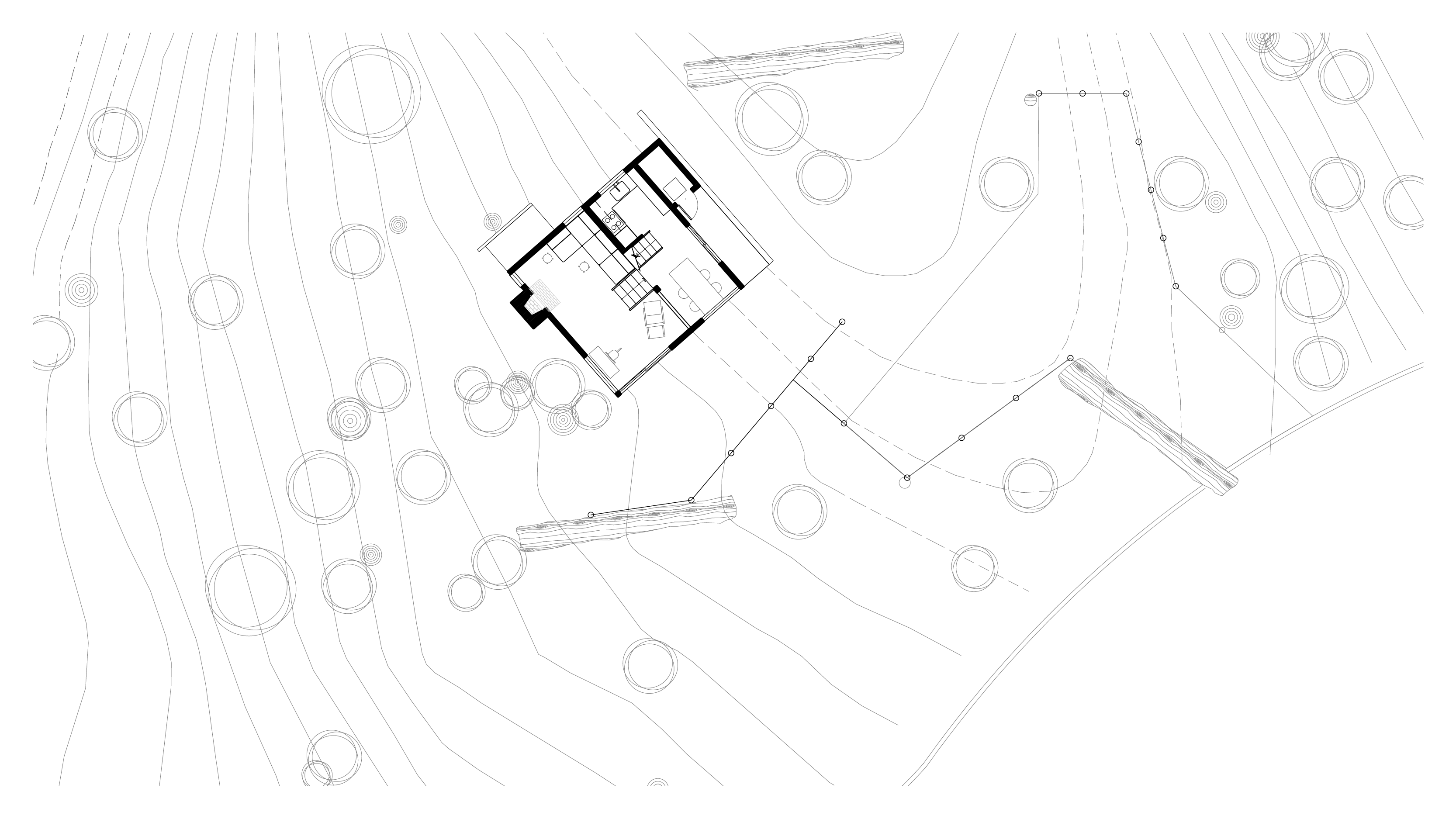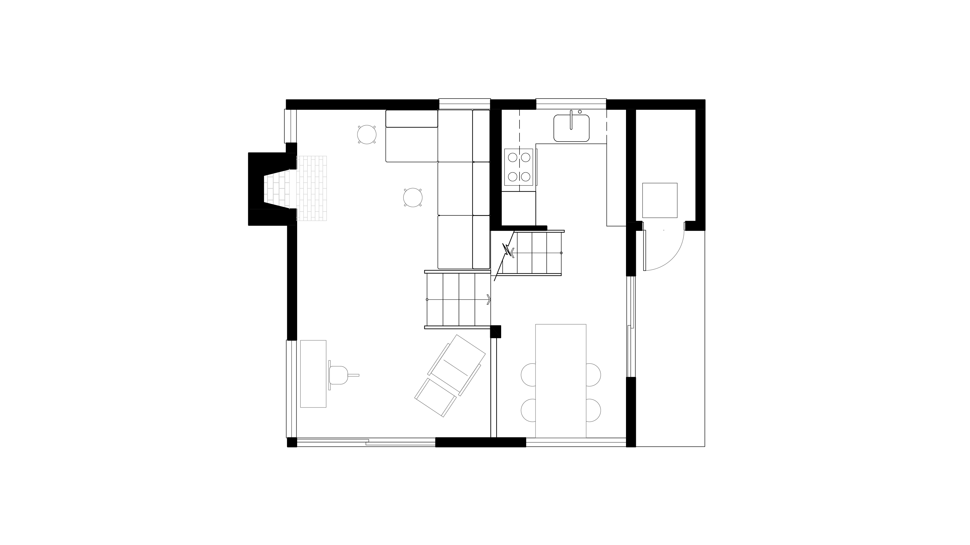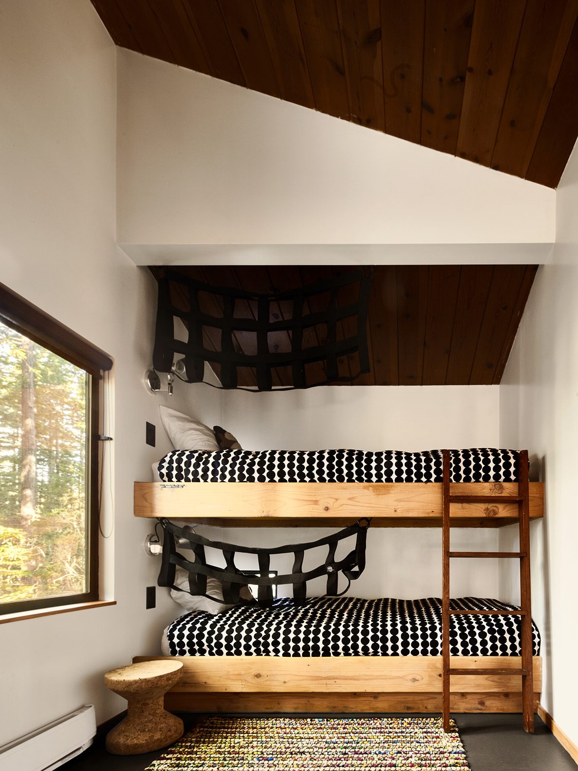 Designed by noted Bay Area architect Joseph Esherick, the home was third in a series of affordable demonstration houses commissioned by the developers of The Sea Ranch, a weekend home community and cultural experiment grounded in 1960s idealism. The home’s current owner, its second since its construction in 1968, sought to restore the home while improving its liveability and performance. George Homsey, Esherick’s partner, consulted on the exterior restoration. New plywood and laminate kitchen cabinets with apartment-size appliances were designed to utilize every inch of space. The original plywood shelving was restored using reclaimed materials from the demolition. A hinged partition gives privacy between the two bedrooms, designed to preserve the original intent of the bedroom level by folding away into the wall when not in use. Large windows connect the interior space to the coastal redwood forest, a towering specimen just outside the workspace window.