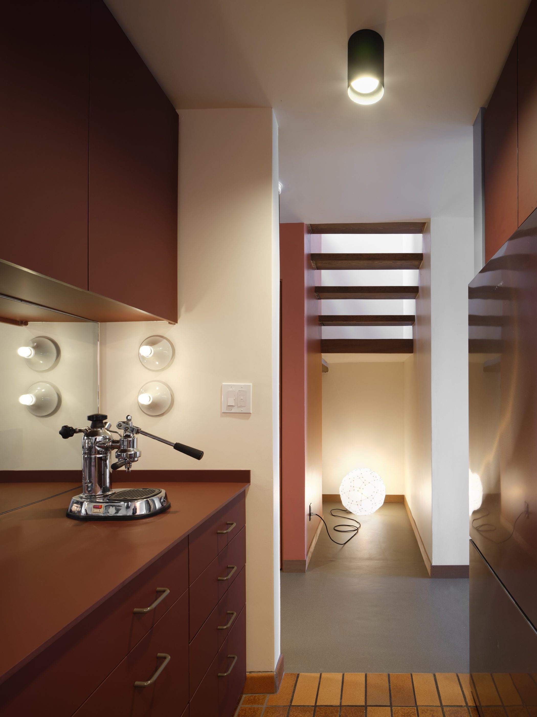 Stylistically attributed to architect John Nance of Confer, Crossen and Nance, the three unit condominium buidling was constructed in 1980 utilizing a townhouse typology. Framestudio have comprehensively re-designed the interior of the unit, and created an architectural space that feels authentically of the period and encompasses unobtrusive contemporary technology.