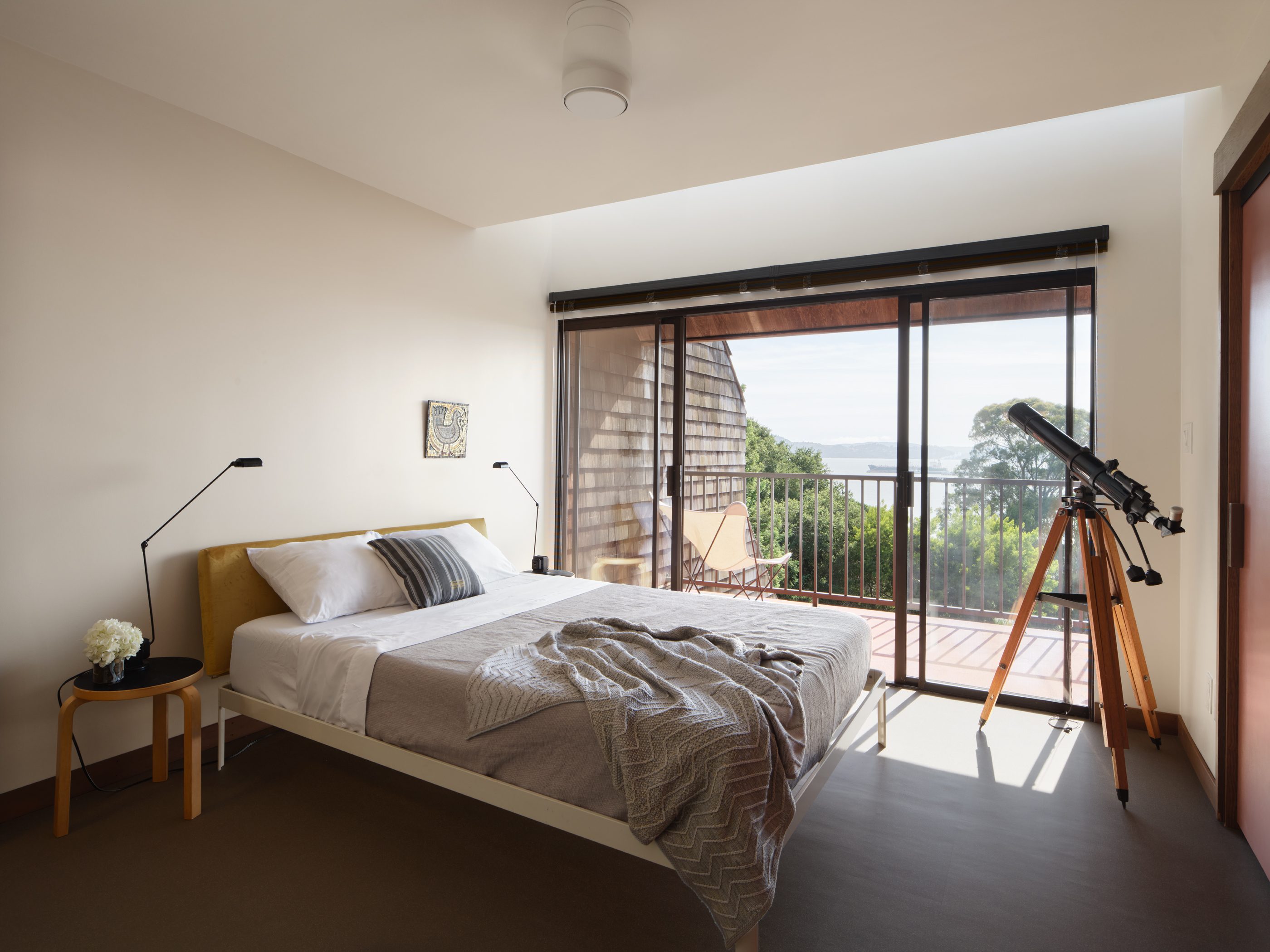 The townhouse is distinctive not only for being the home of a creative industry professional, but also for being a homage to the Northern Calfornia modernism now known as the Third Bay Tradition, which has become synonymous with The Sea Ranch. Thoughtful details abound such as natural rubber and cork flooring, old growth redwood trim, and preserved Agrob Buchtal tile, made in West Germany, and quintessentially of the period.